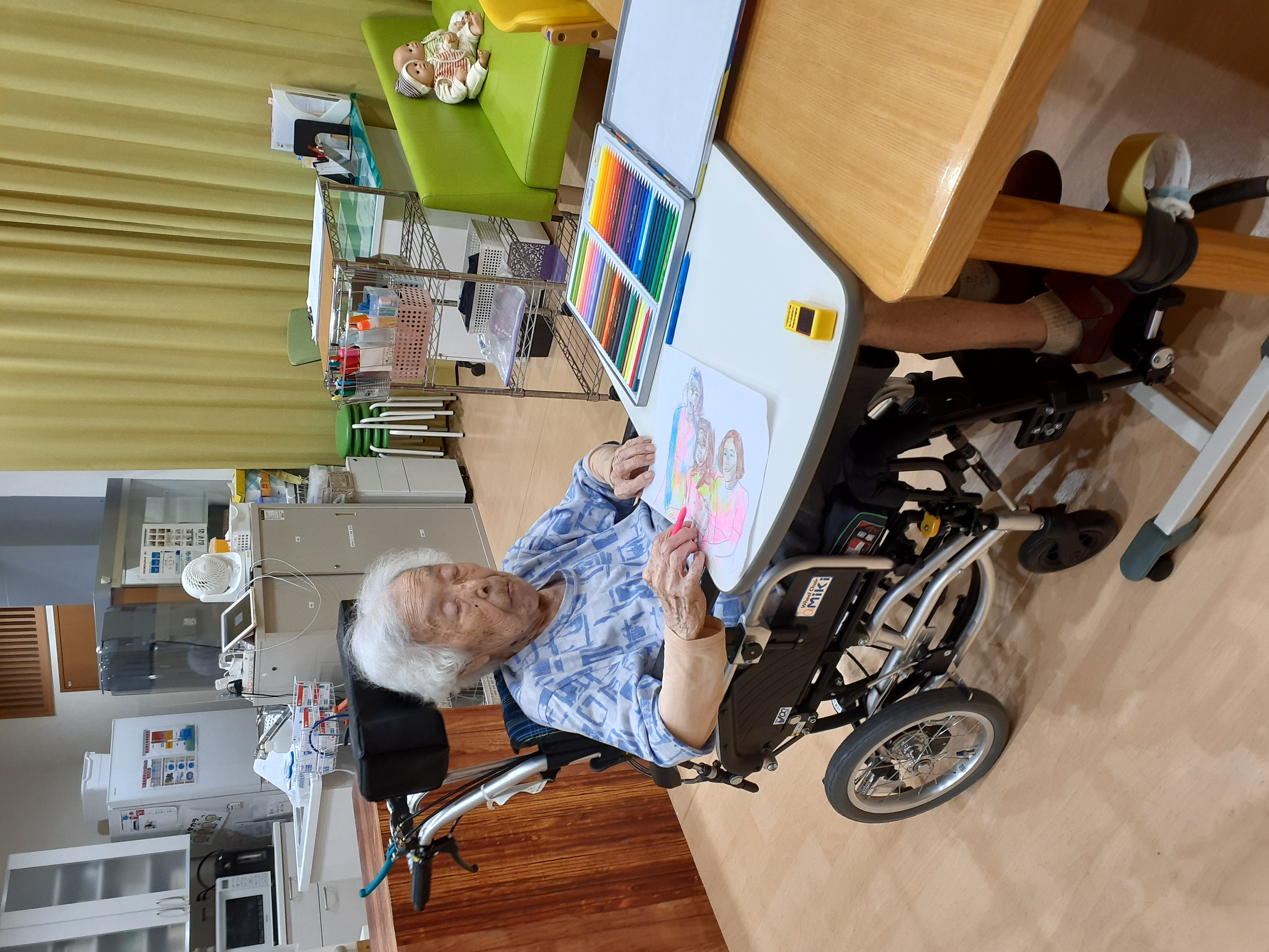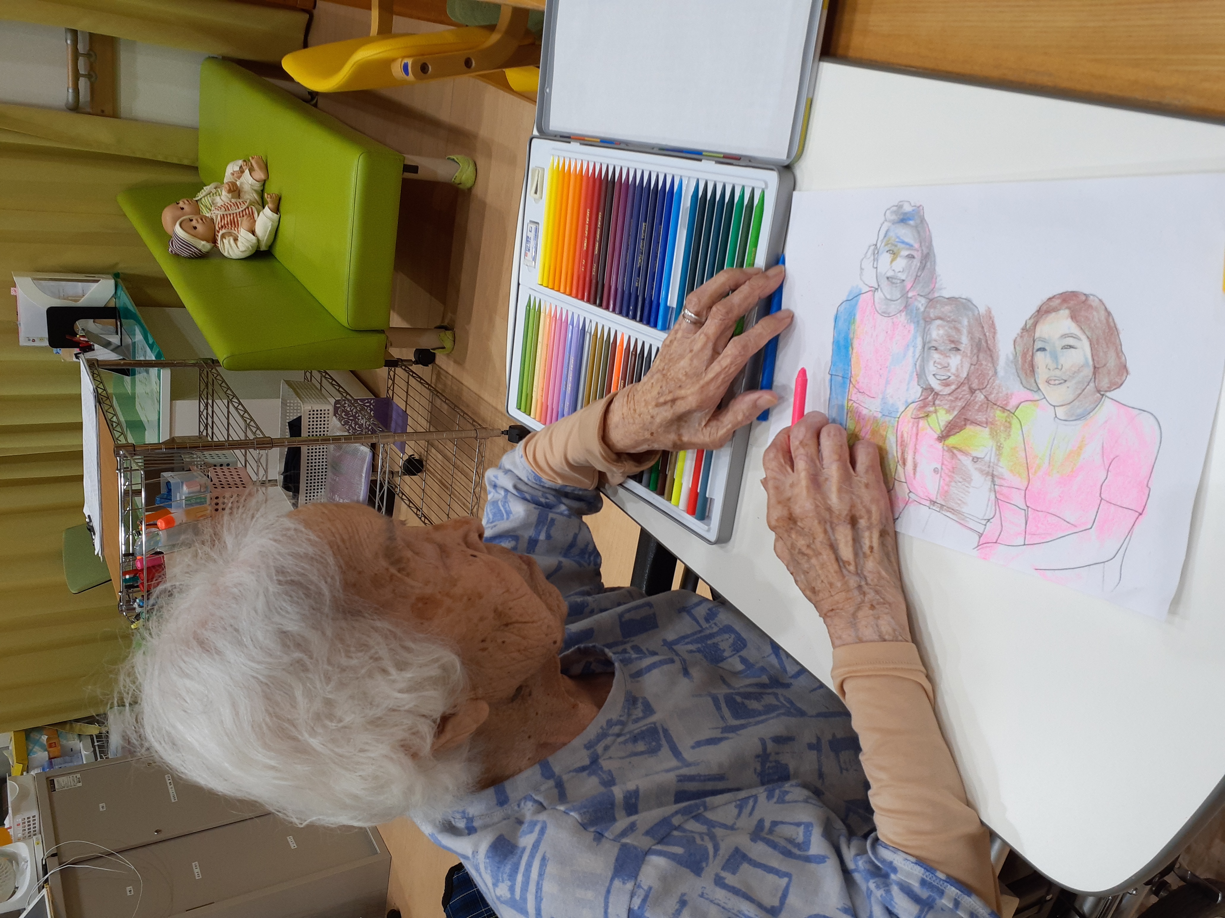 多彩な色鉛筆を選び抜き真剣な面持ち