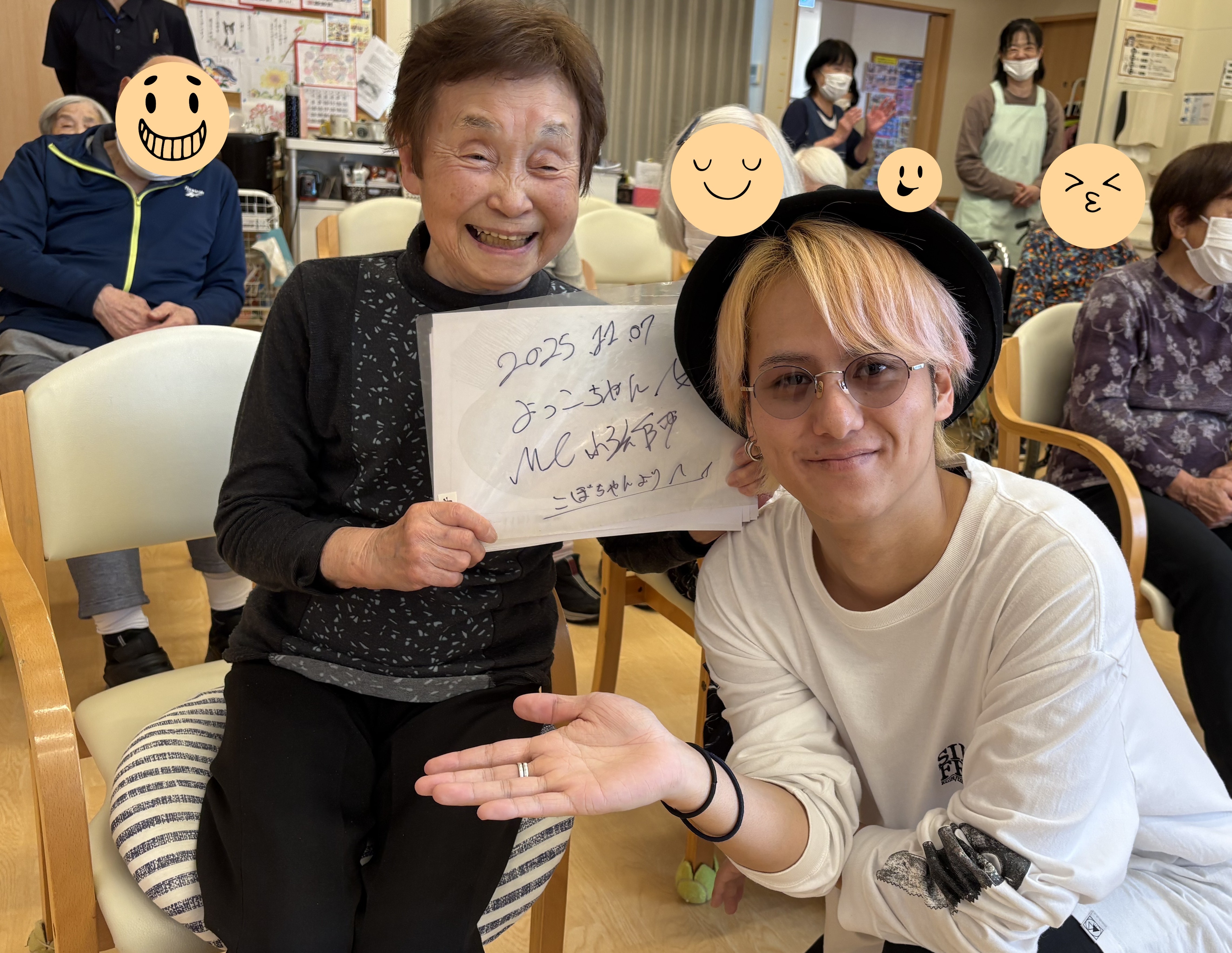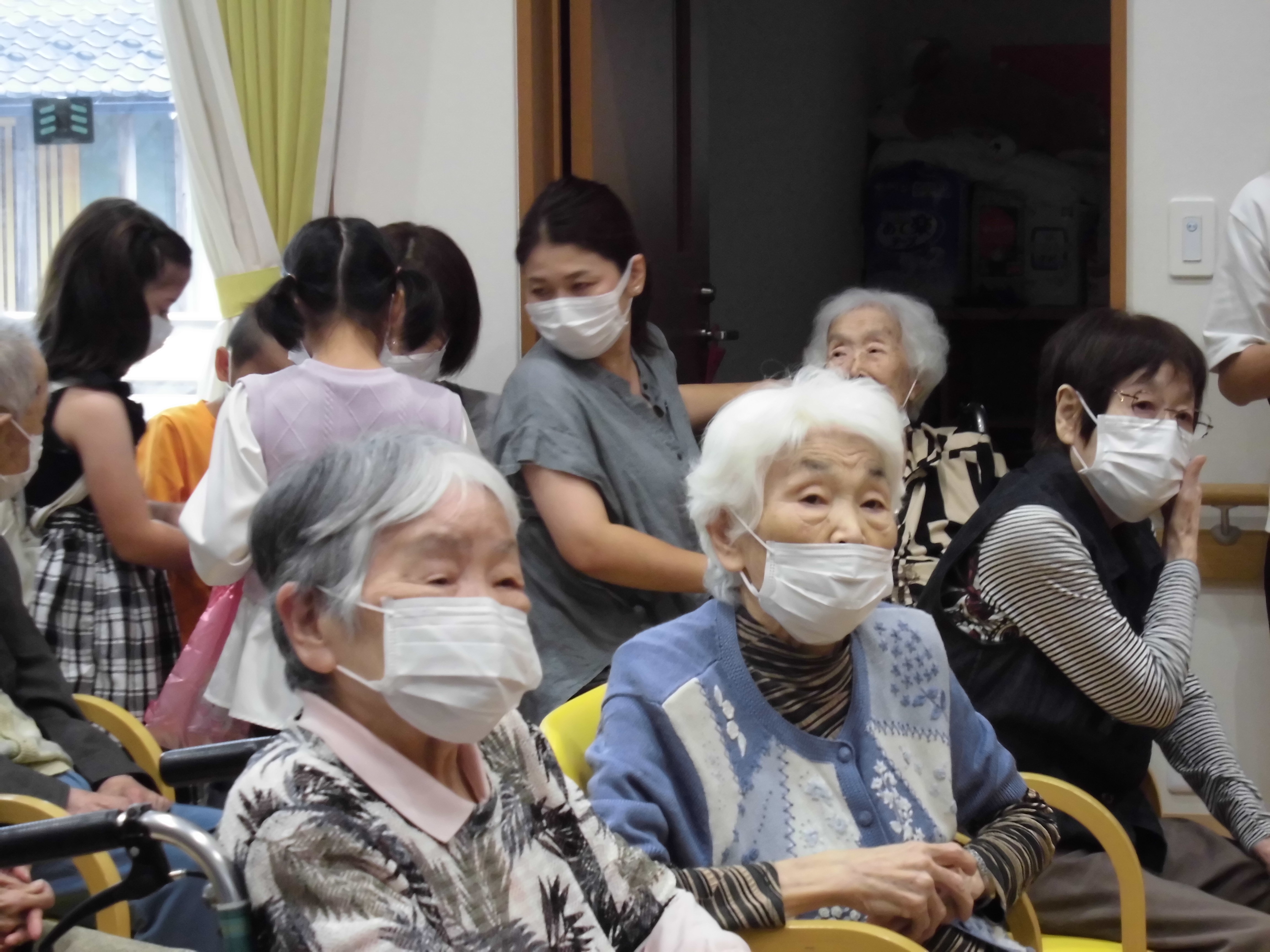 デイサービスとグループホームの皆さんでMC小法師さんの歌もきかせていただきましたよ~😆