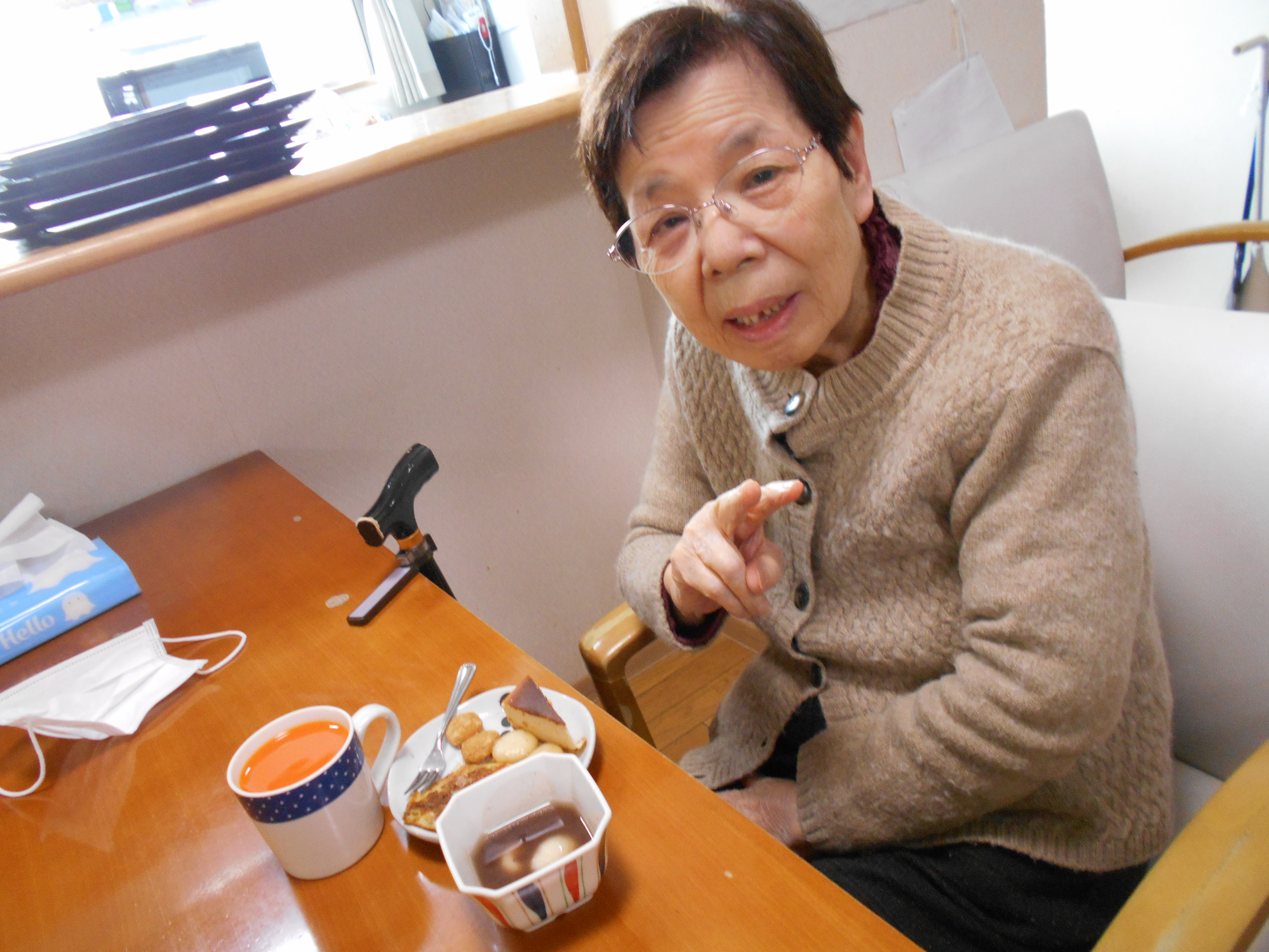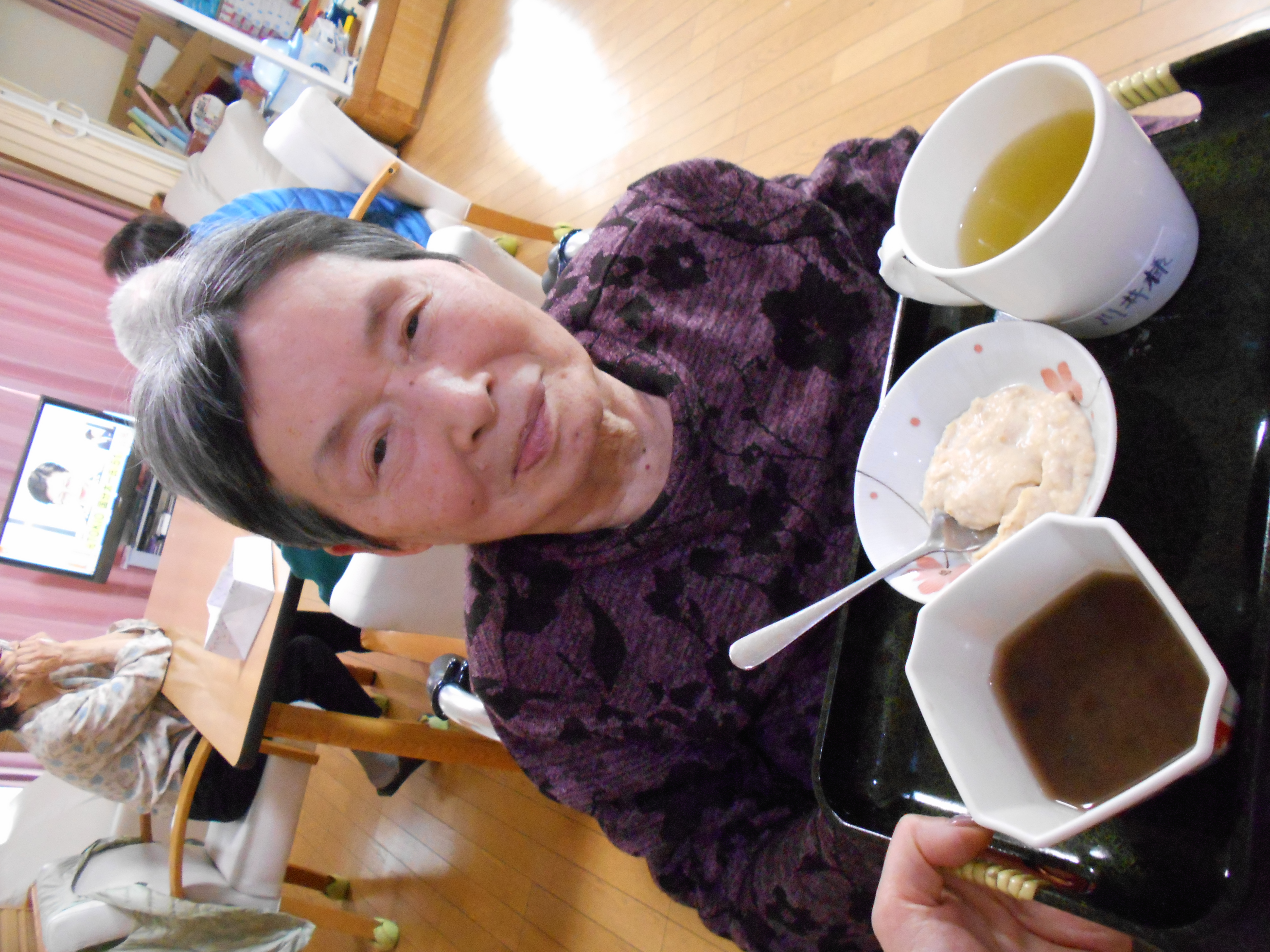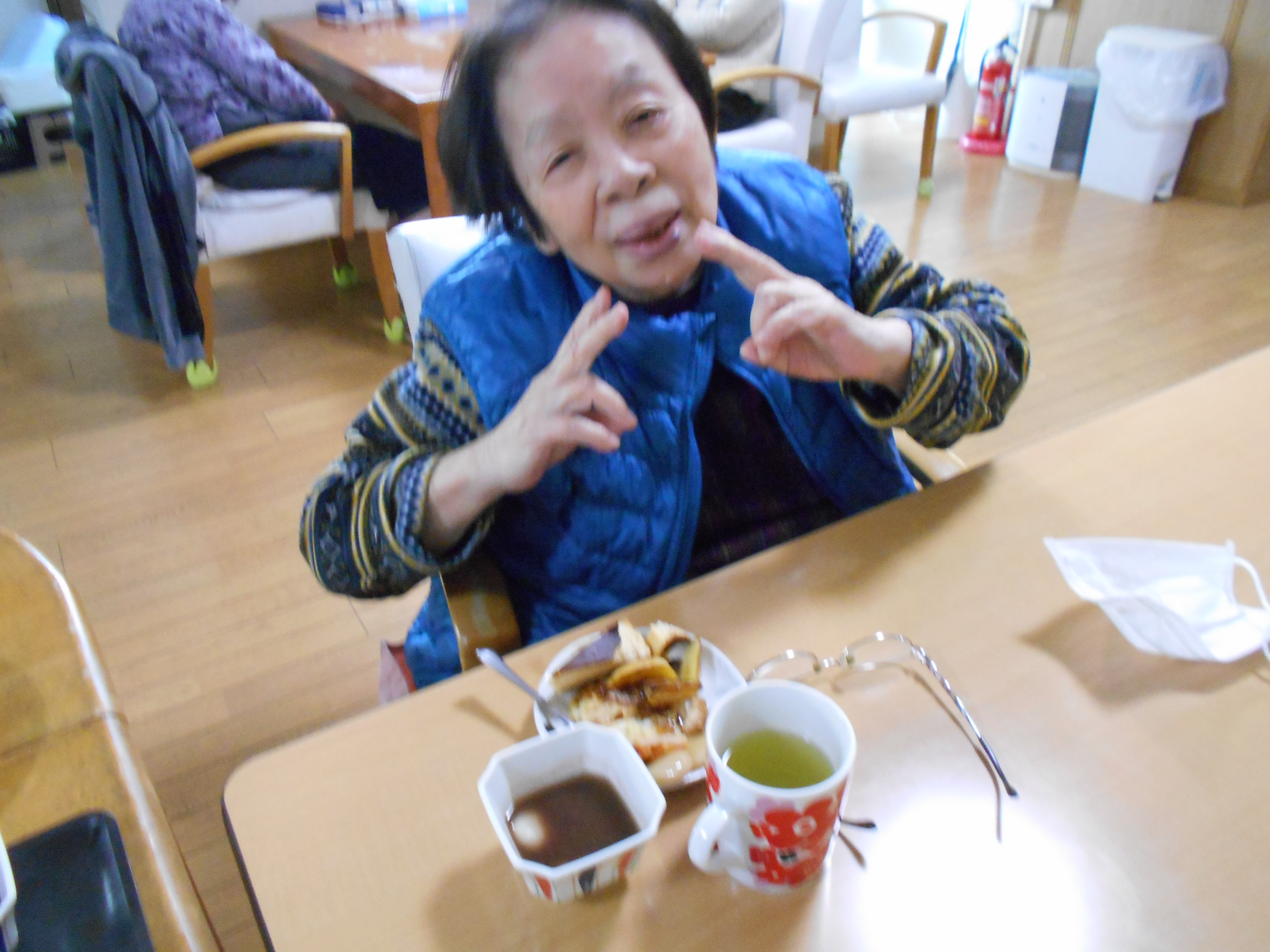 「食欲ねぇんやぁ、、眠いんやぁ」と言っていましたが、ぜんざいを一口食べるとこの通り!