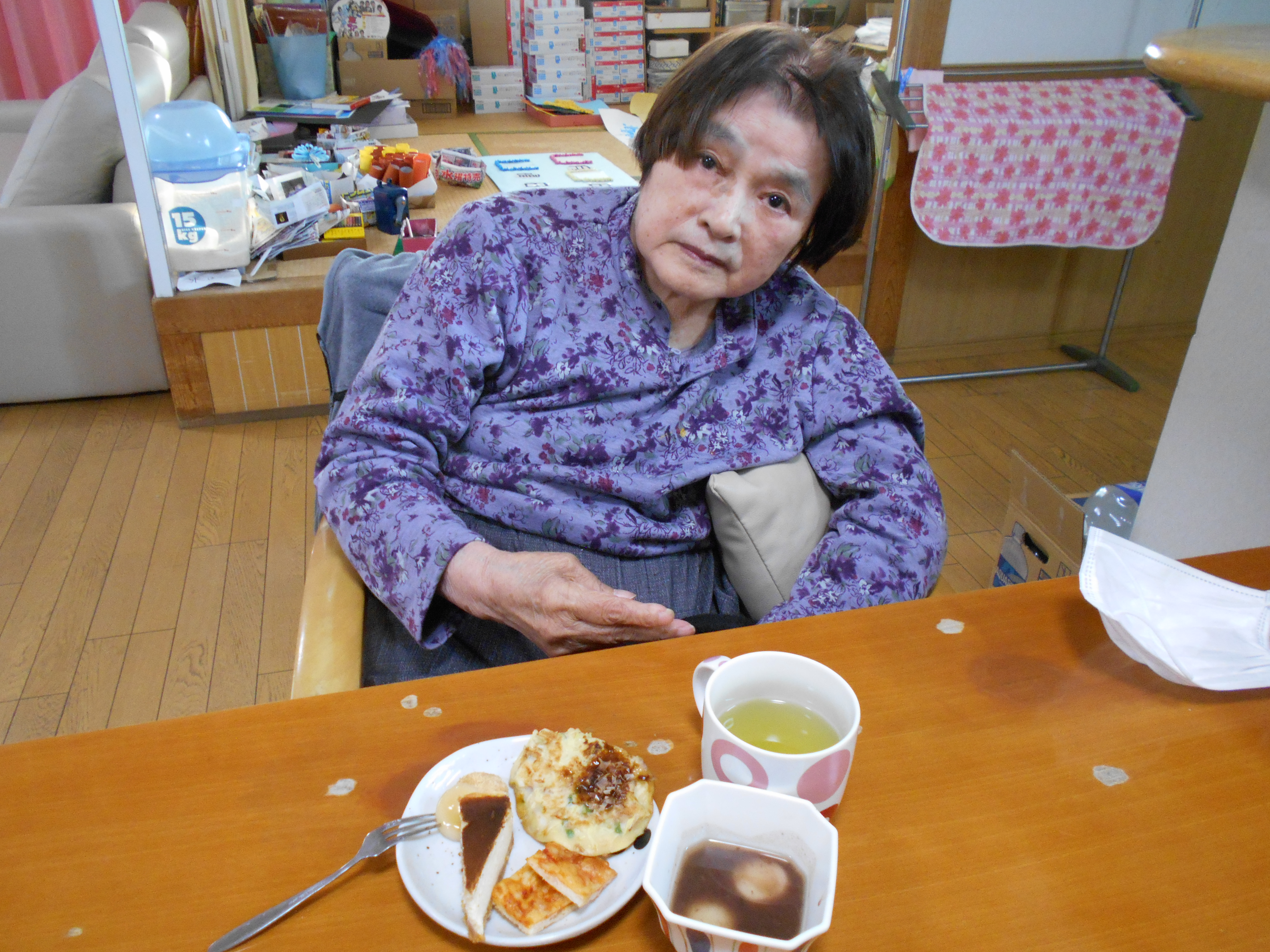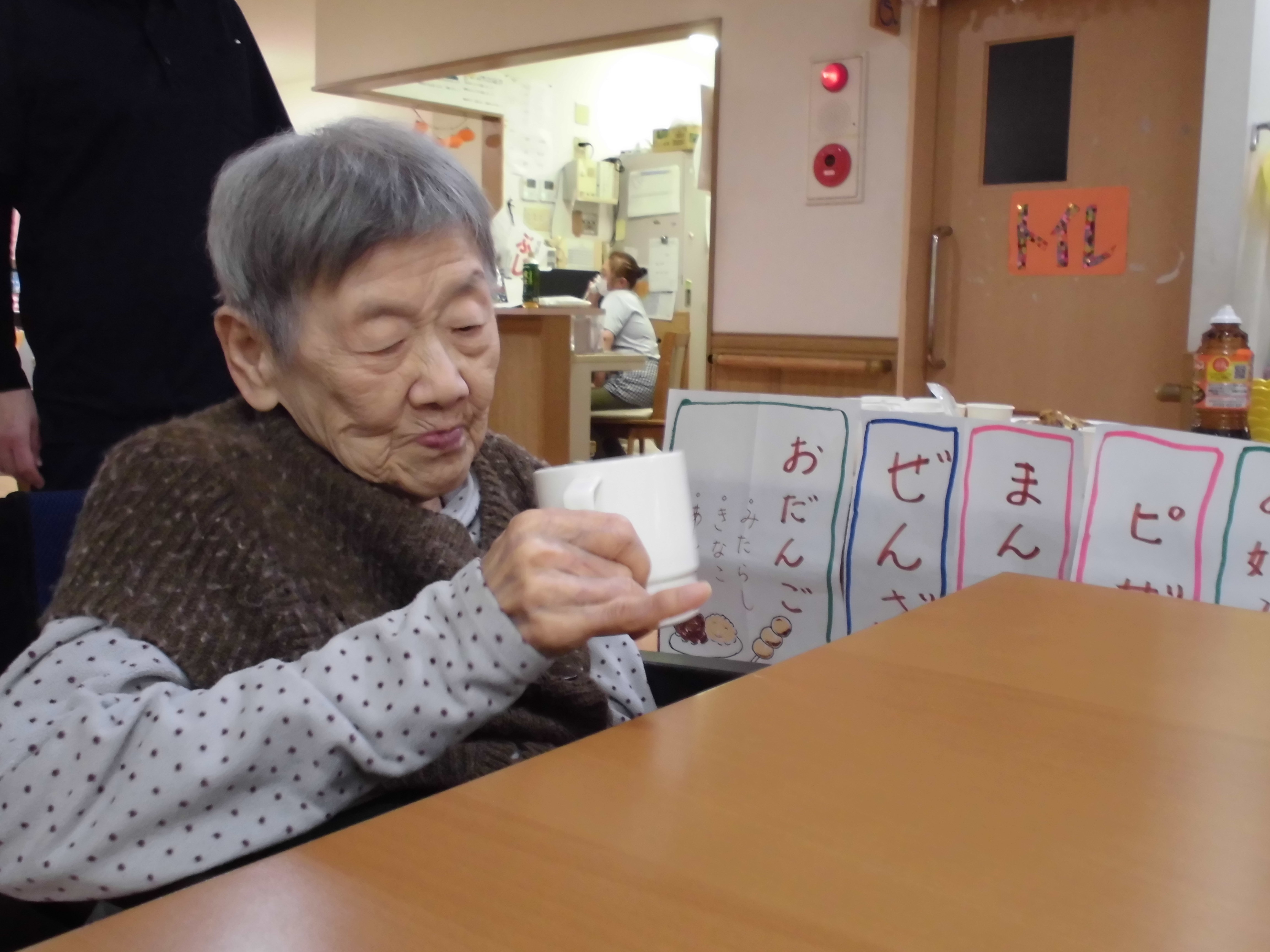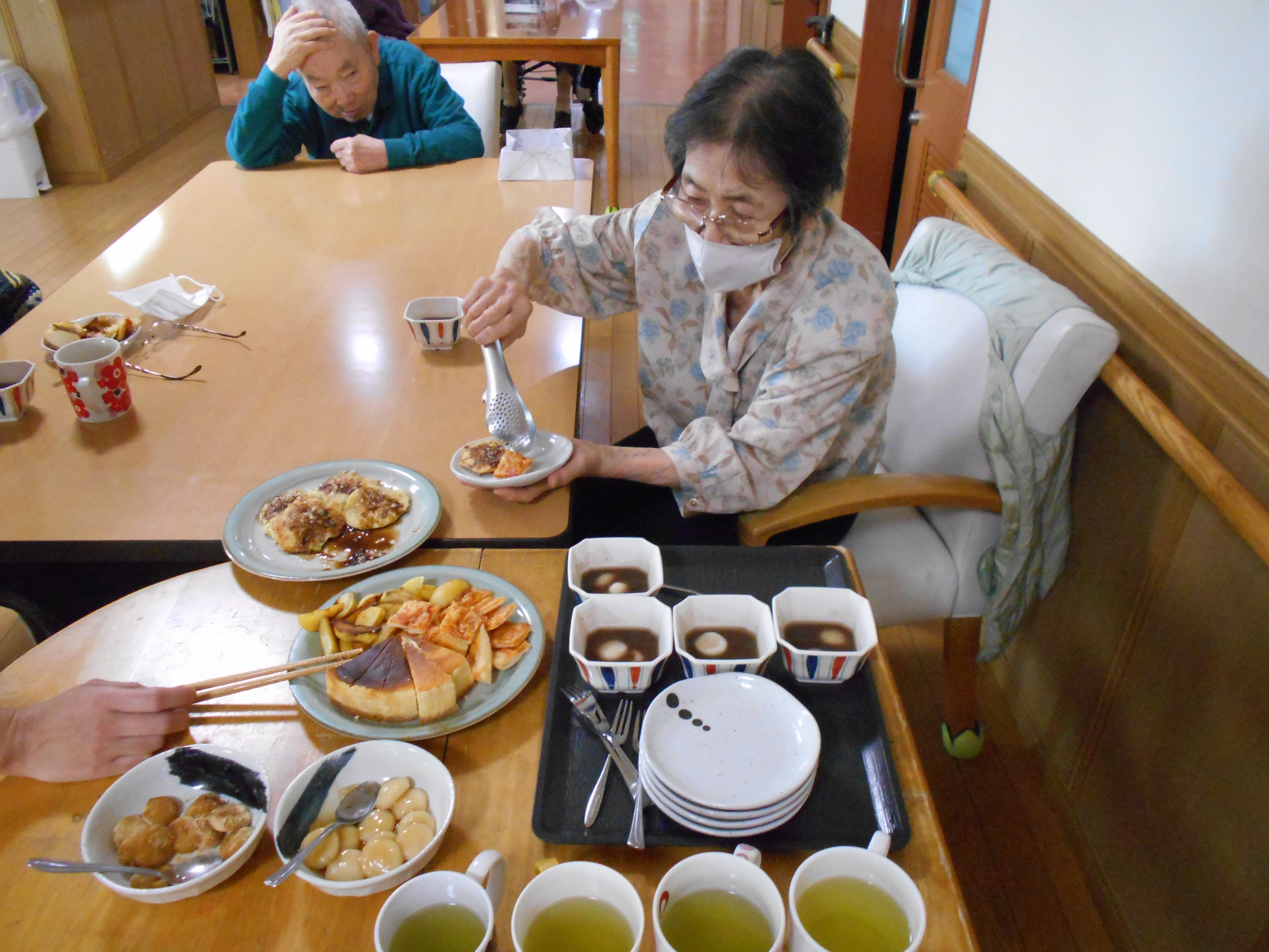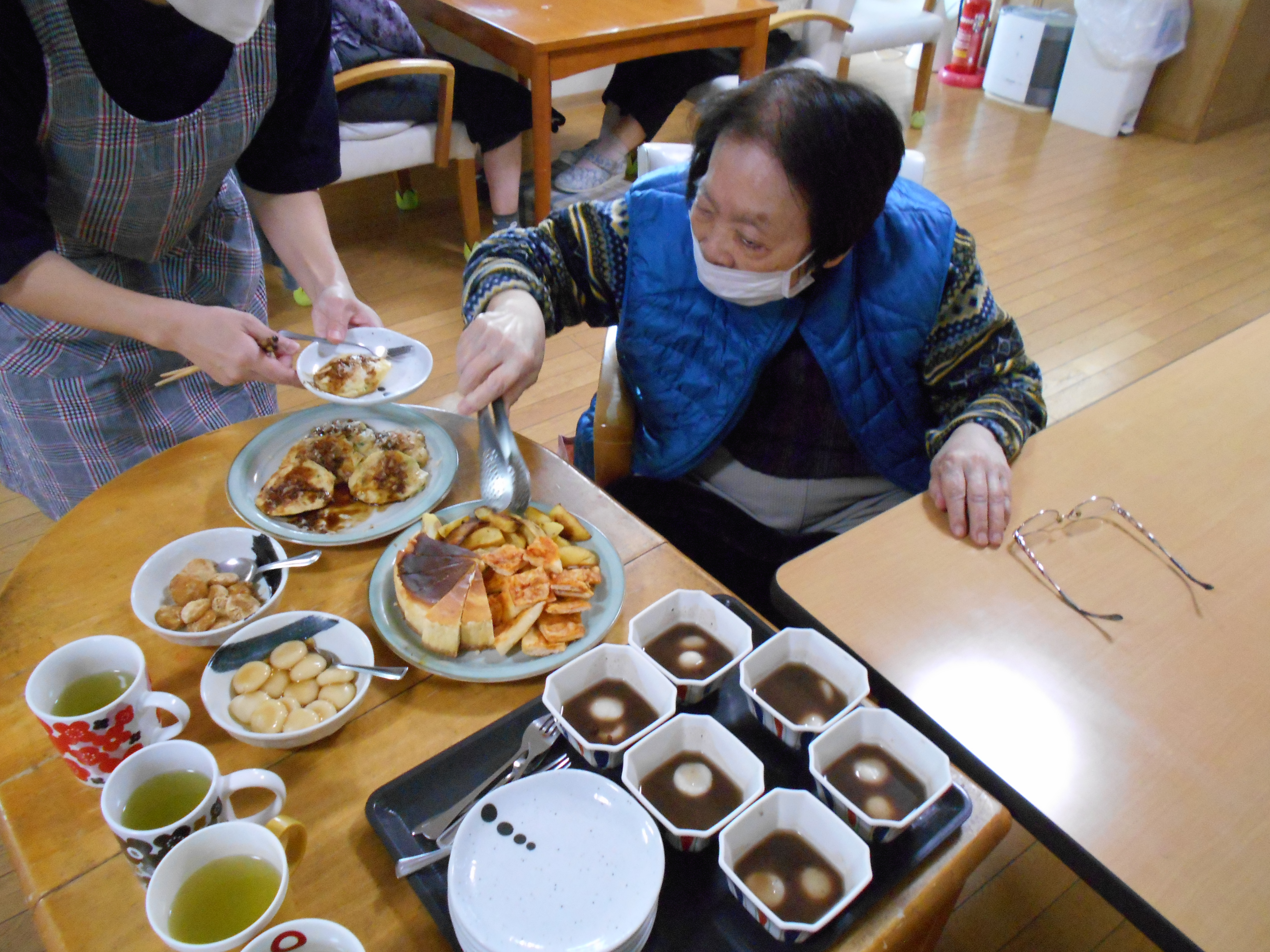 「食欲ねぇんやぁ、、眠いんやぁ」と言っていましたが、ぜんざいを一口食べるとこの通り!